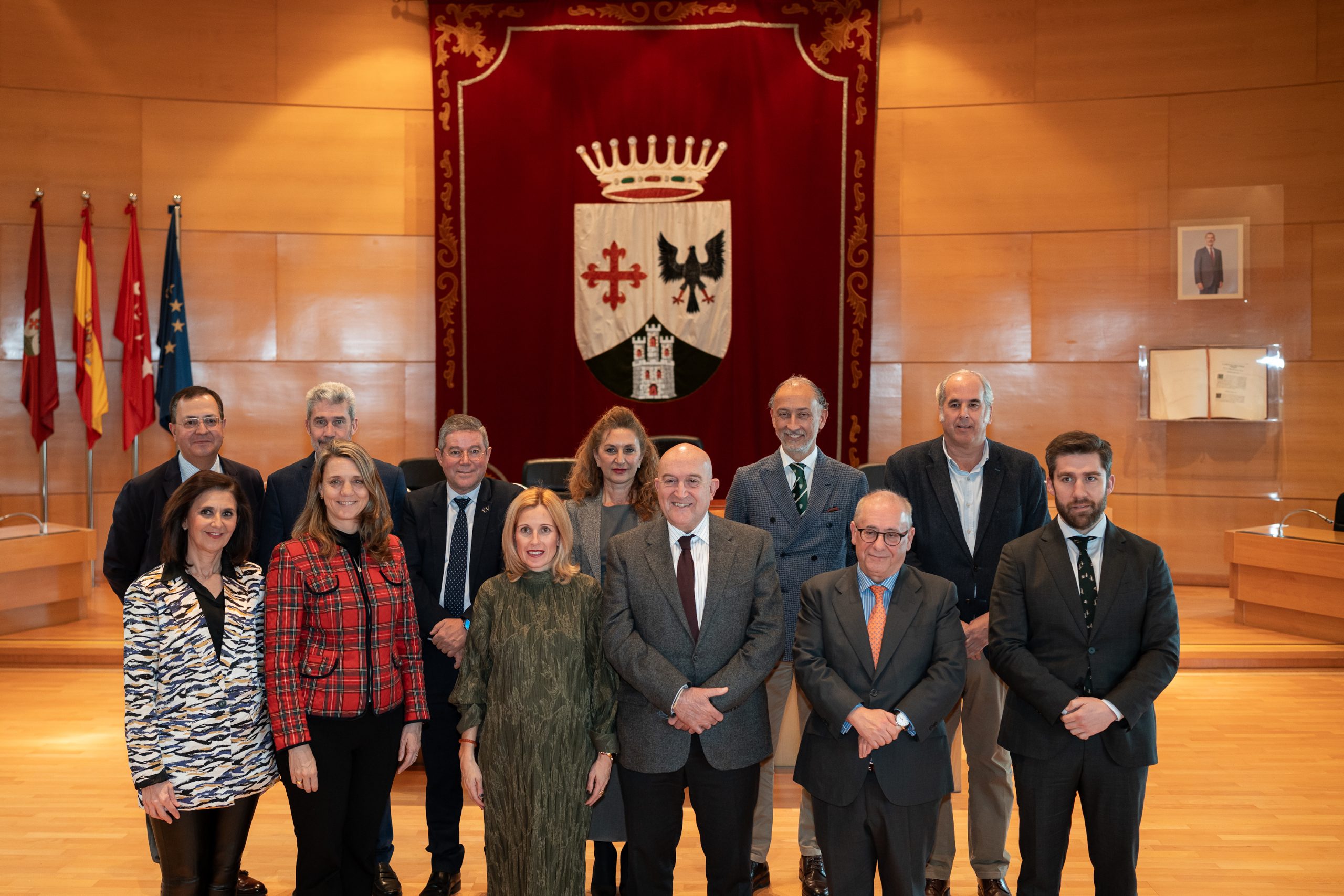 La presidenta de CEOE Valladolid, Ángela de Miguel, y el vicepresidente, Carlos Magdaleno, junto al alcalde de Valladolid, Jesús Julio Carnero, han organizado un encuentro en el Ayuntamiento de Alcobendas para conocer de primera mano el modelo de éxito de su HUB empresarial ‘Madrid Living Business’.